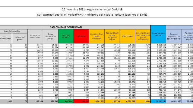 positivi e 263 vittime). Sono 606 i pazienti in terapia intensiva in Italia, 18 in più rispetto a giovedì nel saldo tra entrate e uscite. Gli ingressi giornalieri sono 58. I ricoverati con sintomi nei reparti ordinari sono 4.748, ovvero 59 in più rispetto a ieri. Sono 172.618 gli attualmente positivi, 6.020 in più nelle ultime 24 ore. I guariti odierni sono invece 7.610 rispetto.