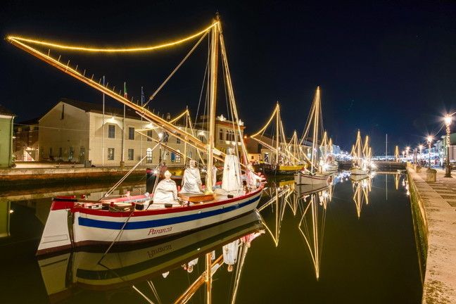 Cesenatico (Fc) - A Cesenatico ritorna dal 4 dicembre la magia del Presepe Galleggiante che ogni anno lascia stregati. Una Natività unica, allestita sul Porto Canale disegnato da Leonardo Da Vinci e ospitata a bordo delle variopinte barche storiche che costituiscono il Museo della Marineria. Ogni barca ospita una scena, con oltre 50 statue in legno di cirmolo a grandezza naturale.