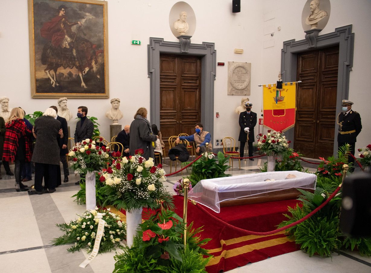 Attaccato ad una parete della camera ardente il Gonfalone della città di Napoli inviato dall'amministrazione comunale. La regista infatti era diventata cittadina onoraria di Napoli nel 2015.