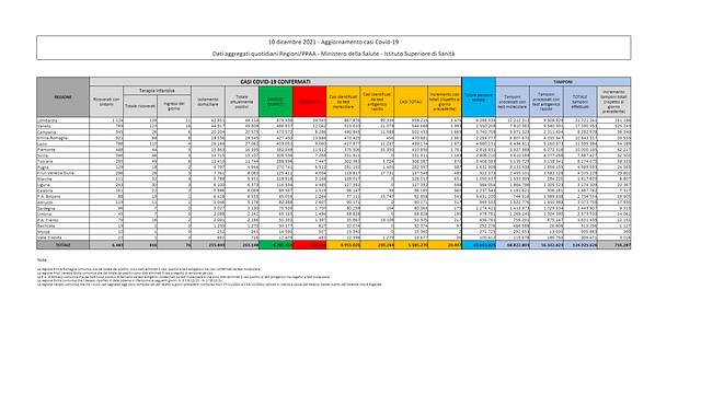 Nelle ultime 24 ore in Italia si sono registrati 20.497 nuovi casi di Covid-19 a fronte di 716.287 tamponi effettuati. In Italia non si toccavano i ventimila contagi giornalieri dal 3 aprile (21.261). Il tasso di positività odierno si attesta al 2,9%, in calo rispetto al 4% del giorno precedente. I decessi sono stati 118, che portano il totale delle vittime dall'inizio della pandemia a 134.669. Guarite 11.777 persone.