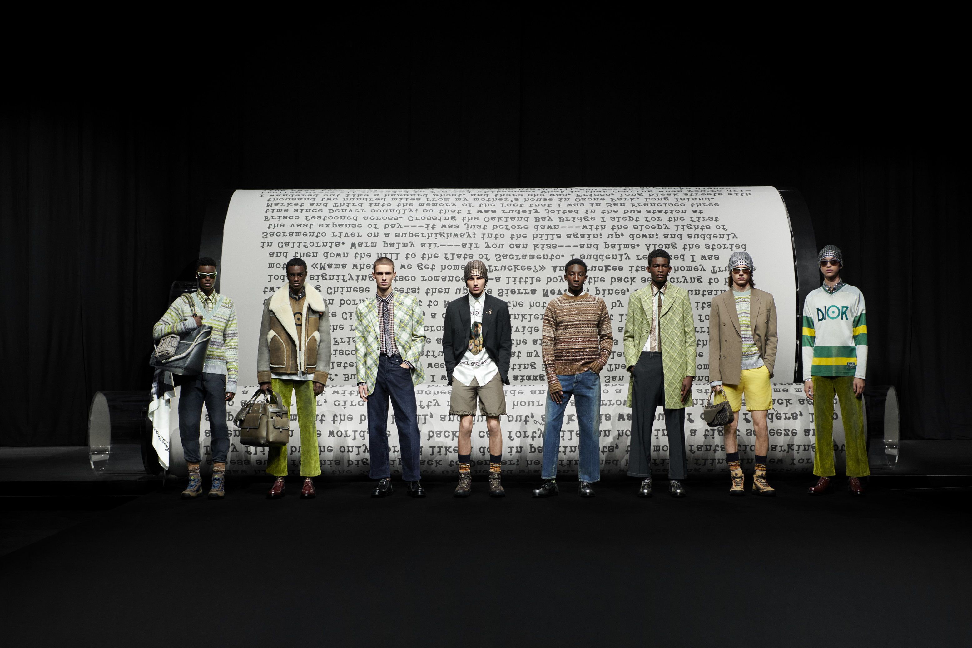 TRA ECCELLENZA E STREETWEAR - In passerella un gigantesco manoscritto, riproduzione del rotolo di carta lungo 36 metri usato dallo stesso Jack Kerouac nelle tre settimane di stesura del suo romanzo autobiografico. I look raccontano l'eccellenza della maison ma anche un certo spirito di libertà, che guarda allo streetwear americano. Un inno alla controcultura e alla sua inesauribile ricchezza creativa.