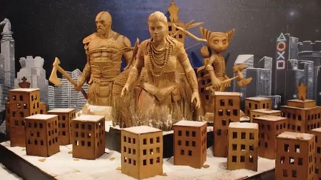 La sua ultima scultura raffigura dunque Kratos di God of War, Aloy del celebre Horizon Zero Dawn e il duo spaziale composto da Ratchet & Clank dell'omonimo videogioco, in piedi, in mezzo a una città costruita interamente in pan di zenzero. Le figure sovrastano i palazzi circostanti in maniera imponente, come degli enormi Godzilla. Le dolci riproduzioni hanno subito scatenato l'entusiasmo (e l'appetito) dei fan in rete.