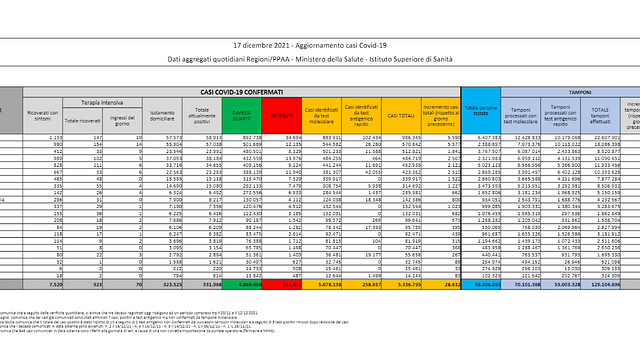 I numeri - Oltre alle terapie intensive (dove sono 70 gli ingressi del giorno) sono in aumento anche i ricoveri ordinari: sono stati 7.520 (+182). In isolamento domiciliare ci sono 323.525 mentre gli attualmente positivi nel nostro Paese sono 331.968. La Regione che ha visto il maggior incremento giornalieri di casi è la Lombardia (+5.590) seguita dal veneto (5.577).