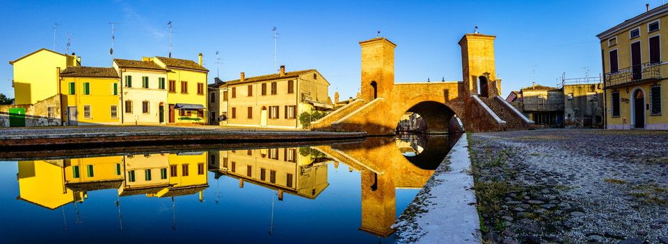 Musei e ponti - Da mettere in agenda una passeggiata a Comacchio per ammirare il complesso architettonico dei Trepponti, simbolo della città con le sue arcate che sovrastano i canali e che risale al '600. Bello anche il Ponte degli Sbirri, mentre Palazzo Bellini ospita un interessante Museo dell'Arte contemporanea e l'archivio storico. da non perdere la Torre dell'orologio, risalente al Trecento e la suggestiva Loggia dei mercanti. Il Museo del Delta Antico con oltre duemila reperti che raccontano la storia delle foci del Grande Fiume è invece ospitato nell'imponente settecentesco complesso architettonico dell'Ospedale degli Infermi.