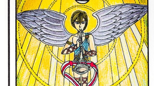 In questo Arcano troviamo appunto raffigurato un angelo che suona una tromba e, sotto la sua immagine, tre figure nude, che escono da una tomba. Si tratta di un uomo, una donna e un altro individuo che viene spesso interpretato come “il bambino alchemico”. La triade potrebbe essere un chiaro riferimento alla trinità. L’uomo e la donna simboleggiano proprio l’essenza del femminile e del maschile, che si fondono tra loro dando vita ad una terza entità.