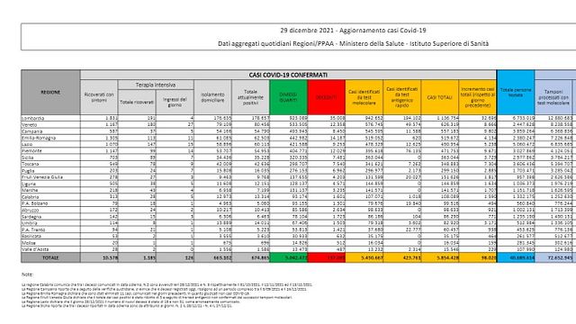 Sono 98.020 i nuovi casi di Covid registrati nelle ultime ore in Italia, martedì erano stati 78.313. I tamponi eseguiti sono stati 1.029.429 per un tasso di positività che si attesta al 9,5%, in aumento rispetto al 7,6% di martedì. I decessi sono stati 148 (martedì erano stati 202). I guariti odierni sono 21.871.