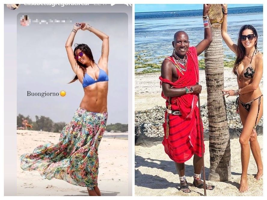 E poi pubblica le foto in bikini sulla spiaggia, ma tra le sue riflessioni ci sono gli abitanti del luogo: “I masai raccontano che la loro origine ebbe luogo quando il progenitore di tutti – Mamasinta – risalì il grande burrone. In passato, i masai vestivano di pelli, spesso colorate con colori vegetali. Oggi molti masai vestono usando due teli di cotone leggero che dalle spalle si incrociano sui lombi e un terzo telo a coprire il bacino, il tutto fissato da una cintura di cuoio. Alla cintura c’è una spada corta. Al polso, un uomo masai può portare dei braccialetti di cuoio, legno, di perline o di metallo. Il braccialetto di metallo è quello più prezioso in quanto è tramandato di padre in figlio, questo è un segno di rispetto e di saggezza. Molti stilisti si sono spesso ispirarti ai loro bracciali e collane. Le loro canzoni e danze sono qualcosa di magico per me”.