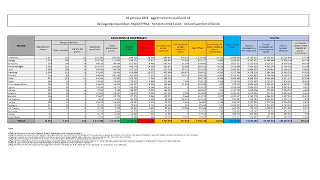 I numeri della pandemia Sono 1.351 i pazienti in terapia intensiva, 32 in più in 24 ore nel saldo tra entrate e uscite. Gli ingressi giornalieri sono 103. I ricoverati con sintomi nei reparti ordinari sono 12.333, cioè 577 in più rispetto a domenica. Aumentano gli attuali positivi: sono 54.515 in più rispetto a ieri, per un totale di 1.125.052.