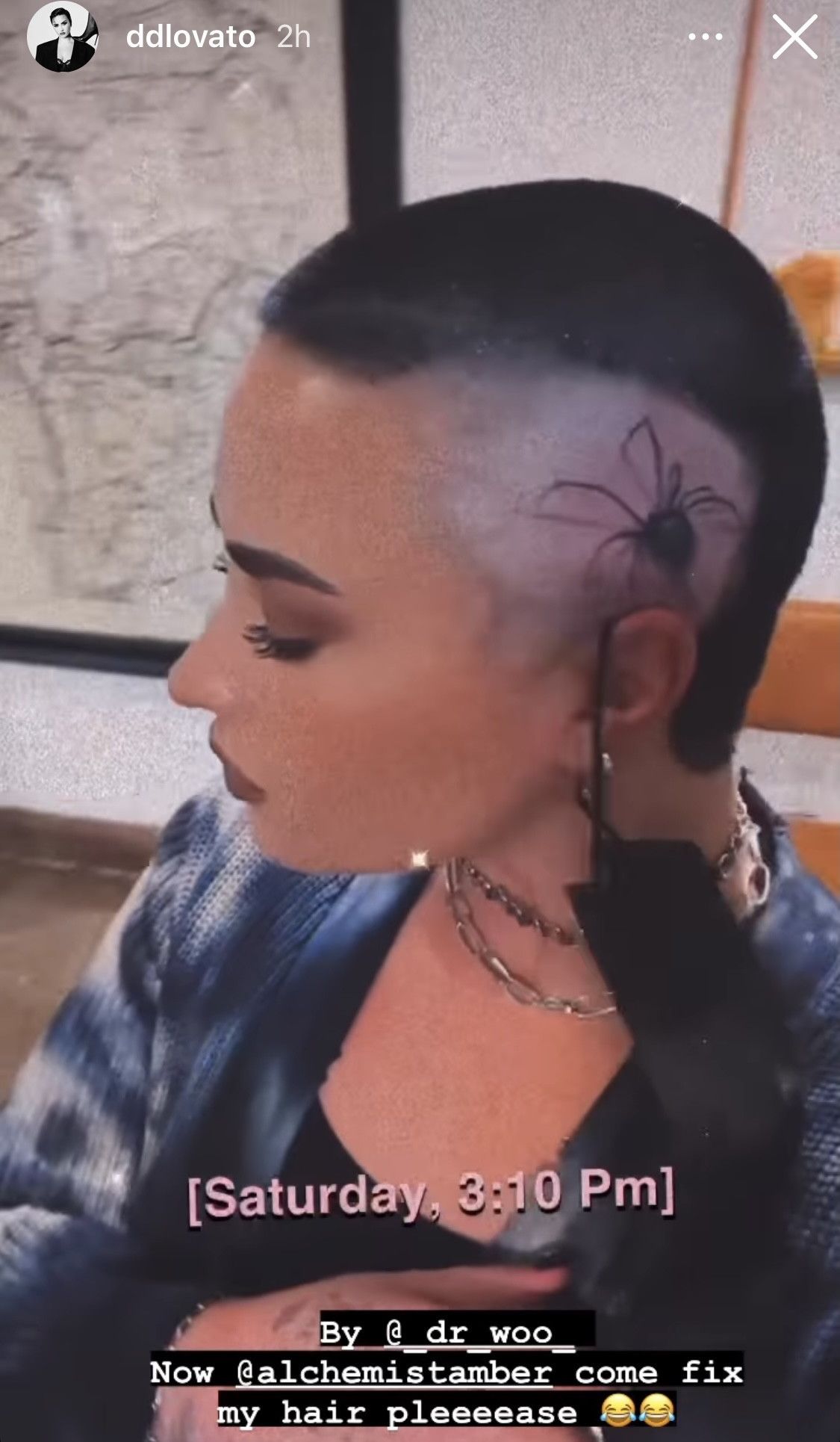Nuovo colpo di testa per Demi Lovato, che ha festeggiato la fine del percorso di riabilitazione facendosi tatuare un enorme ragno sulla testa rasata. La cantante ha mostrato soddisfatta l'opera di dottor Woo, uno dei tatuatori più in voga di Hollywood. Il disegno è dedicato alla nonna, una figura a cui è molto legata.