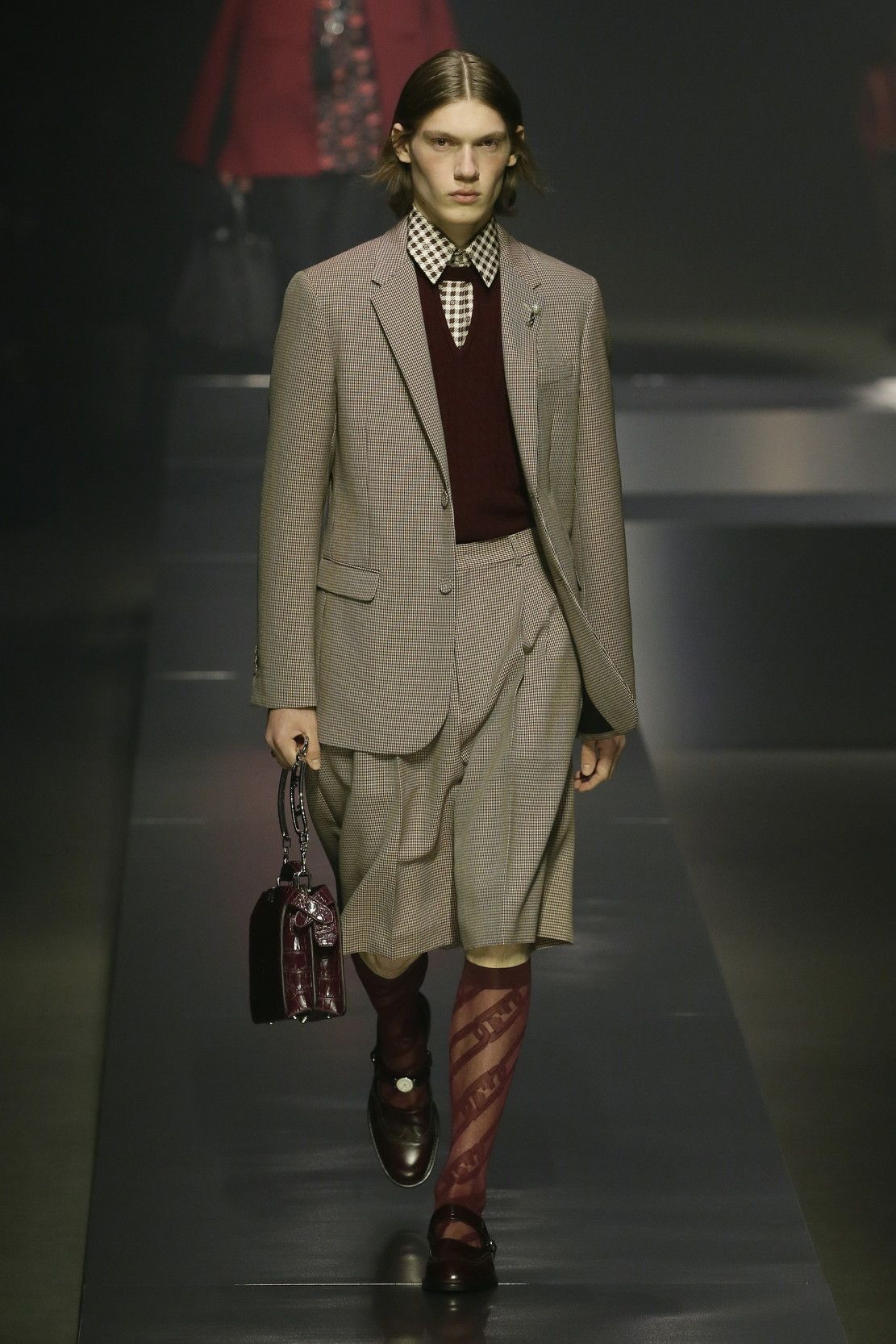 UN NUOVO DANDY - L’eleganza del classico è onnipresente ma anche rivisitata. Le giacche doppiopetto si accorciano, i maglioni si allungano, i pantaloni hanno la vita alta, i cinturini degli orologi diventano quelli delle scarpe. Una nuova cura nel vestire e nel prendersi cura di sé: “Questi nuovi anni Venti sono stati intensi – ha spiegato al termine della sfilata la stilista, a capo della linea maschile e degli accessori della casa di moda romana –. Mi piaceva l’idea di fare un punto e di parlare di dandismo come reazione a un momento difficile”.