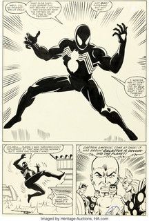 La tavola a tre pannelli, disegnata da Mike Zeck, è tratta dal numero 8 di Secret Wars, una serie pubblicata dalla Marvel Comics nel 1984-85. "Questa pagina è stata la grande rivelazione a cui alludeva la copertina! È qui che Peter Parker ha davvero ottenuto il suo nuovo vestito nero elegante", spiega la casa d'aste Heritage Auctions descrivendo la pagina 25 della pubblicazione.