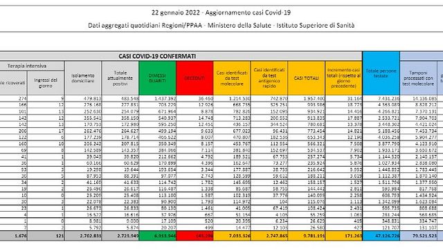 In calo le vittime - Le vittime da Covid sono invece 333 mentre ieri erano state 373. Secondo il bollettino del ministero della Salute, sono 2.723.949 gli attualmente positivi al Covid in Italia, con un incremento di 28.246 nelle ultime 24 ore. Dall'inizio della pandemia i casi totali sono 9.781.191, mentre i morti sono 143.296. I dimessi e i guariti sono invece 6.913.946, con un incremento di 148.756 rispetto a ieri.