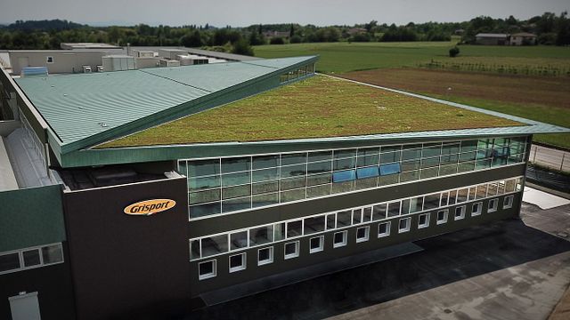 Costruita secondo i dettami dell’architettura eco-sostenibile, Grisport vanta a Castelcucco, in provincia di Treviso, una superficie produttiva di 74mila metri quadrati e 5.300 m3 di pannelli fotovoltaici per una superficie impiegata di 15mila metri quadri (equivalente a quasi 4 campi da calcio). La potenza complessiva è superiore ai 660mila kwh/anno, mentre la produzione energetica totale è di 840mila kWh l’anno. Tutto ciò permette all’azienda di non emettere nell’atmosfera 500 tonnellate di CO2 ogni anno. La scelta di impiegare oltre 700 metri quadri di verde sul tetto ha poi il triplice scopo di mitigare l’impatto visivo, generare un processo di pulizia dell’aria e trattenere quasi 14 litri di acqua per metro quadrato.