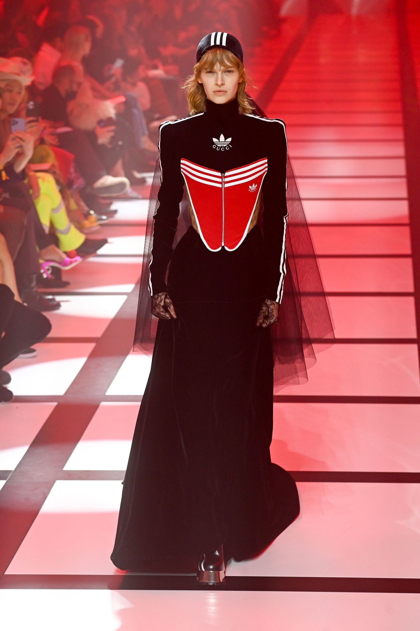 Ci sono quelli che riflettono e quelli che distorcono l’immagine. In una sala completamente foderata di specchi, ha sfilato a Milano la collezione Gucci per i prossimi freddi. In passerella, l’inedita collaborazione con Adidas, le cui righe iconiche si fondono così con quelle della maison dalla doppia G. É l’uomo a fare da protagonista: i look presentati, durante la Fashion Week dedicata alla moda donna, sono quasi tutti maschili.