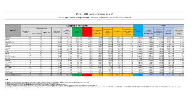 I numeri della pandemia Sono 625 i pazienti ricoverati in terapia intensiva, 29 in meno rispetto a giovedì nel saldo tra entrate e uscite. Gli ingressi giornalieri sono invece 31. I ricoverati nei reparti ordinari sono 9.297, cioè 302 in meno rispetto a 24 ore fa. Gli attualmente positivi sono 1.023.787, in calo di 17.675 unità.