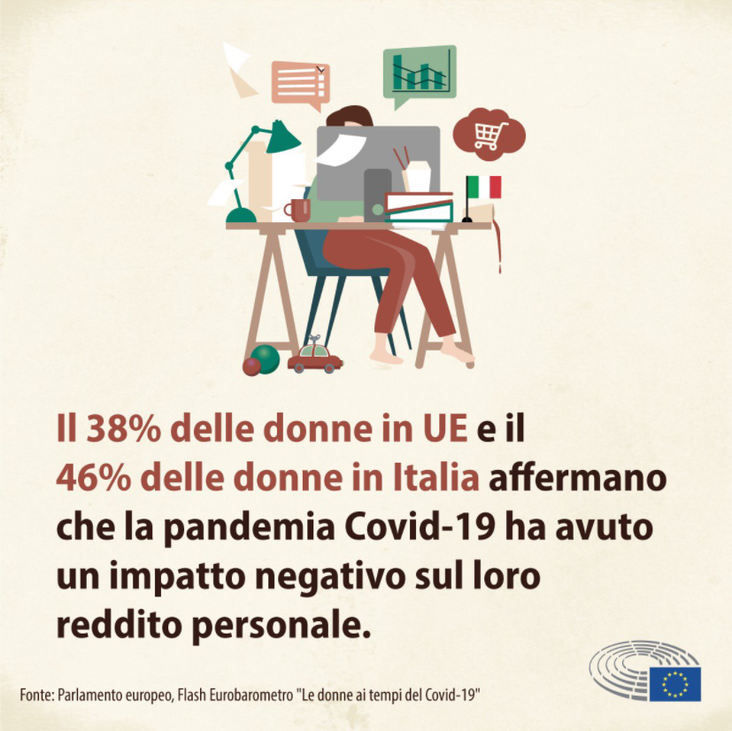 Il 77% delle donne europee ritiene che il Covid abbia causato un aumento della violenza fisica ed emotiva. Il 38% afferma che la pandemia ha avuto un impatto negativo anche sul reddito, il 44% su equilibrio lavoro e vita privata e il 21% sul tempo dedicato al lavoro retribuito. È quanto emerge da un sondaggio Eurobarometro che valuta l'impatto della pandemia su vari aspetti della vita delle donne europee, commissionato dal Parlamento europeo per la Giornata internazionale dei diritti della donna dell'8 marzo.