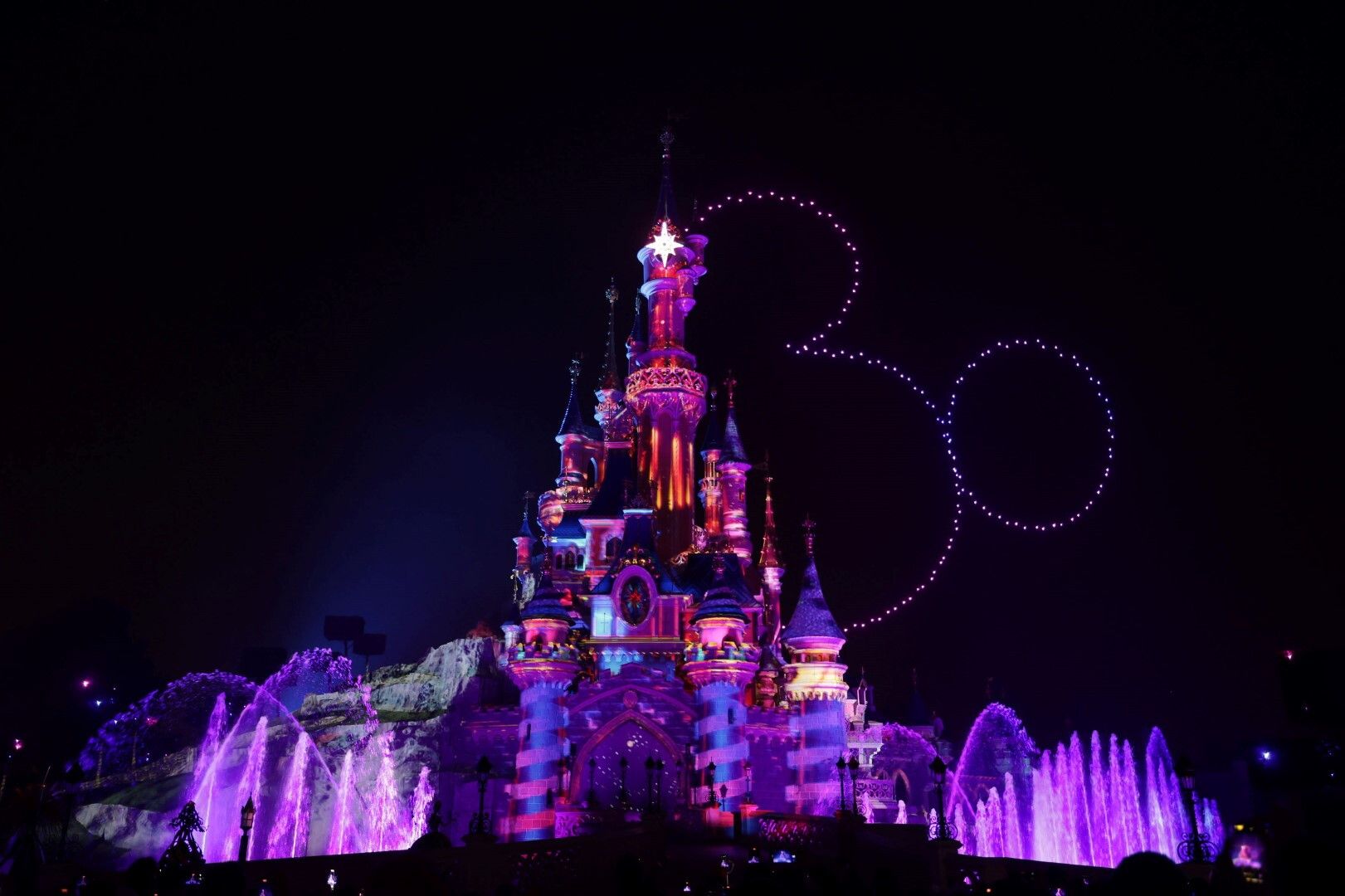Il Castello della Bella Addormentata fa da scenario anche al magico spettacolo notturno Disney D Light, nuovo pre-show che combina video proiezioni, getti d’acqua luminosi, effetti di luce, nebbia, celebri brani Disney e, soprattutto, una fantastica coreografia di droni, per un vero e proprio concentrato di effetti speciali. Il pre-show si conclude proprio con la spettacolare danza di 200 droni che formano uno scintillante numero 30 nel cielo sopra il Castello, danzando sulle note della nuova colonna sonora creata per l’occasione e intitolata “Un monde qui s’illumine”, registrata con un’orchestra sinfonica presso gli iconici Abbey Road Studios di Londra.