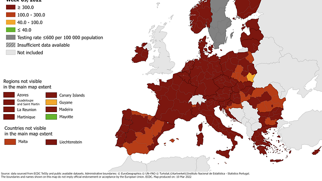 Nella mappa aggiornata del Centro europeo per il controllo delle malattie sul rischio Covid, la Valle d'Aosta è l'unica Regione italiana a migliorare dal rosso all'arancione. In arancione ci sono anche diverse altre aree in Spagna, e nell'Est europeo, mentre l'unica in giallo è una regione della Polonia orientale.
