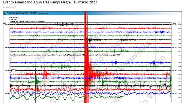 Una scossa di terremoto di magnitudo 3.5, con epicentro l'area della Solfatara a Pozzuoli (Napoli), nei Campi Flegrei, è stata avvertita in una vasta area del Napoletano intorno alle 15 del 16 marzo. Secondo le prime informazioni il sisma, profondità 2,7 chilometri, è stato seguito da uno sciame di scosse di portata inferiore nei minuti successivi. L'area della Solfatara - si sottolinea dall'Osservatorio Vesuviano - è naturalmente soggetta a bradisismo e a questo fenomeno sono collegati vari sciami sismici di diversa intensità in corso da mesi. L'evento odierno è il più forte nell'area flegrea dalla crisi del bradisismo del 1983-84, quasi quaranta anni fa. La scossa è stata avvertita distintamente anche a Napoli, in particolar modo ai piani alti degli edifici.