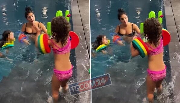 Pomeriggio tra ragazze per Georgina Rodriguez e le figlie Eva e Alana Martina. La modella, in dolce attesa di un maschio e una femmina da Cristiano Ronaldo, sguazza in piscina con le bambine che si divertono come matte. In bikini nero sfoggia le curve prosperose e sotto il pelo dell'acqua si intravede il pancione. La gravidanza volge al termine, e presto un'altra coppia di gemelli si aggiungerà alla numerosa famiglia di CR7.