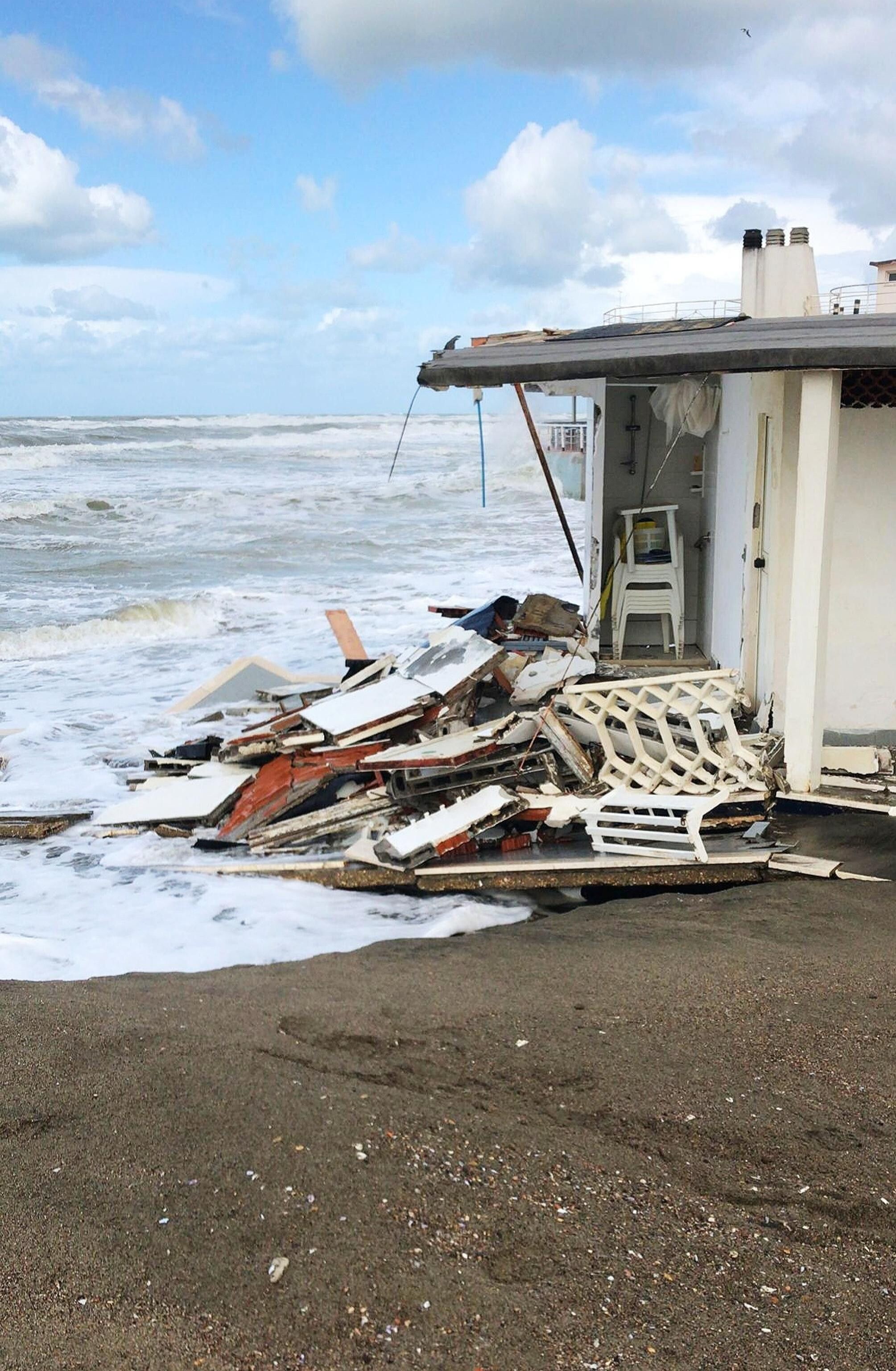 Mareggiata sul litorale romano - È stata, a detta anche dei balneari, la più forte mareggiata degli ultimi mesi quella che ha colpito tutto il litorale romano. Con il vento di libeccio fino a 80/90 km/h e onde fino a tre metri, una sorpresa non gradita quasi "fuori stagione" per le attività balneari di Ostia, Fiumicino, Focene, Fregene, alle prese da tempo con i gravi problemi di erosione, anche se già in passato ci sono state mareggiate ad aprile. Qualcuno, in vista di Pasqua, aveva già cominciato a livellare l'arenile ma ora si vede vanificato il lavoro preliminare. L'acqua, in alcuni casi, lambisce le strutture degli stabilimenti.
