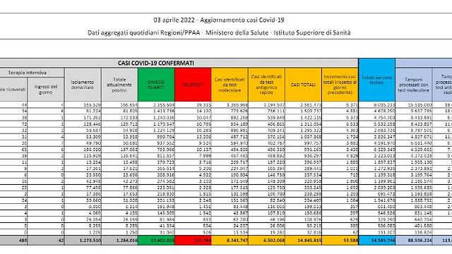 Sono 489 i pazienti ricoverati in terapia intensiva, 4 in meno di ieri nel saldo tra entrate e uscite. Gli ingressi giornalieri sono 42. I ricoverati nei reparti ordinari tornano sopra quota 10mila: 10.017, ovvero 68 in più rispetto a sabato.
