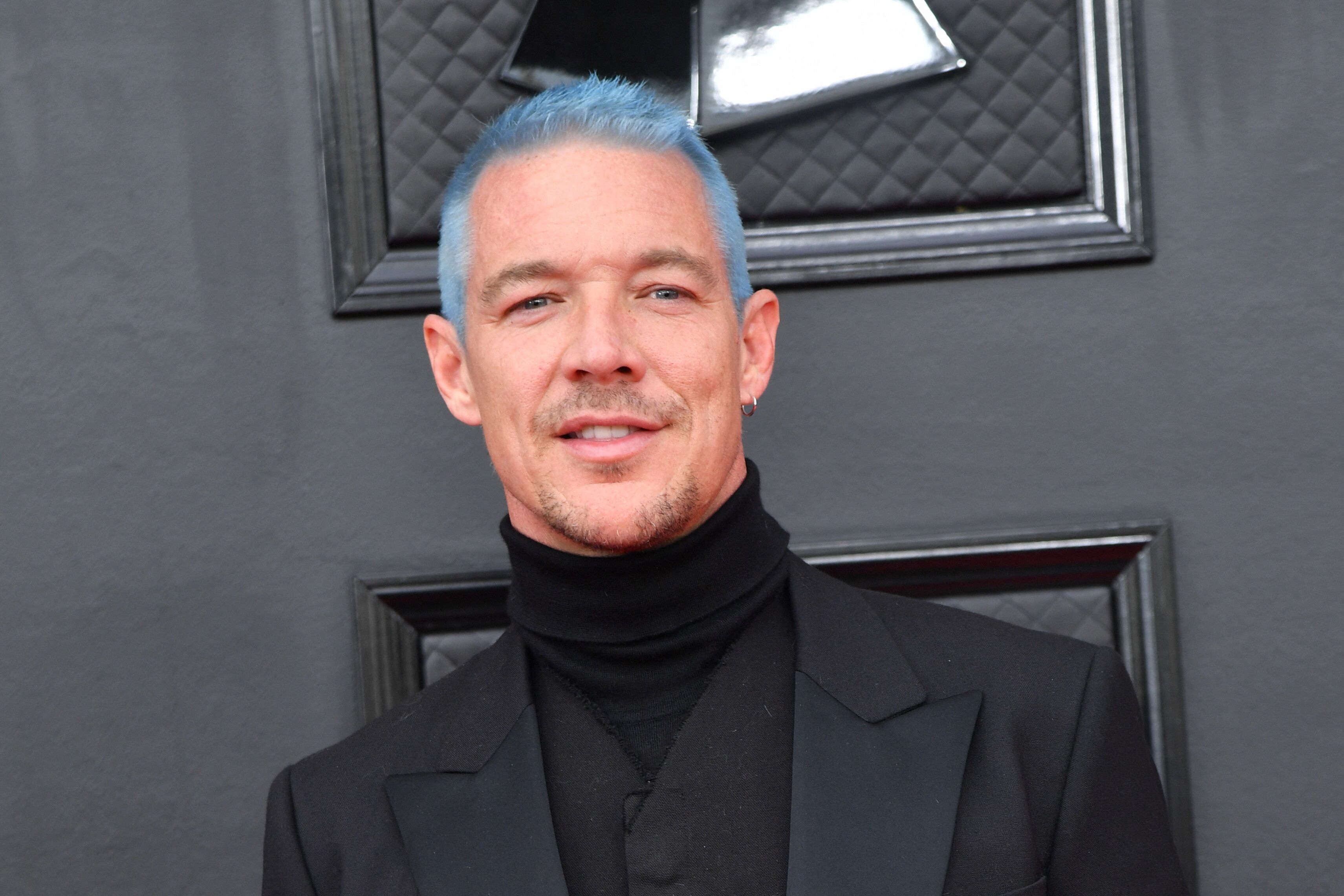 Più che un atto di trasgressione, una licenza di stile. Se ci fossero stati dei Grammy anche per il look, ne avrebbe fatto incetta a mani basse. Sul red carpet della 64esima edizione della “Music’s biggest night” di Las Vegas, Diplo si è presentato con un completo total black. Sotto il gilet, al posto della camicia, una maglia dolcevita. Stivaletti a punta, con un po’ di tacco. A dare però un tocco davvero particolare, sono stati i capelli blu. Di una sfumatura vicinissima al colore dei suoi occhi, cangiante e dai riflessi quasi argento, chiara e perfettamente accordata alla sua carnagione.