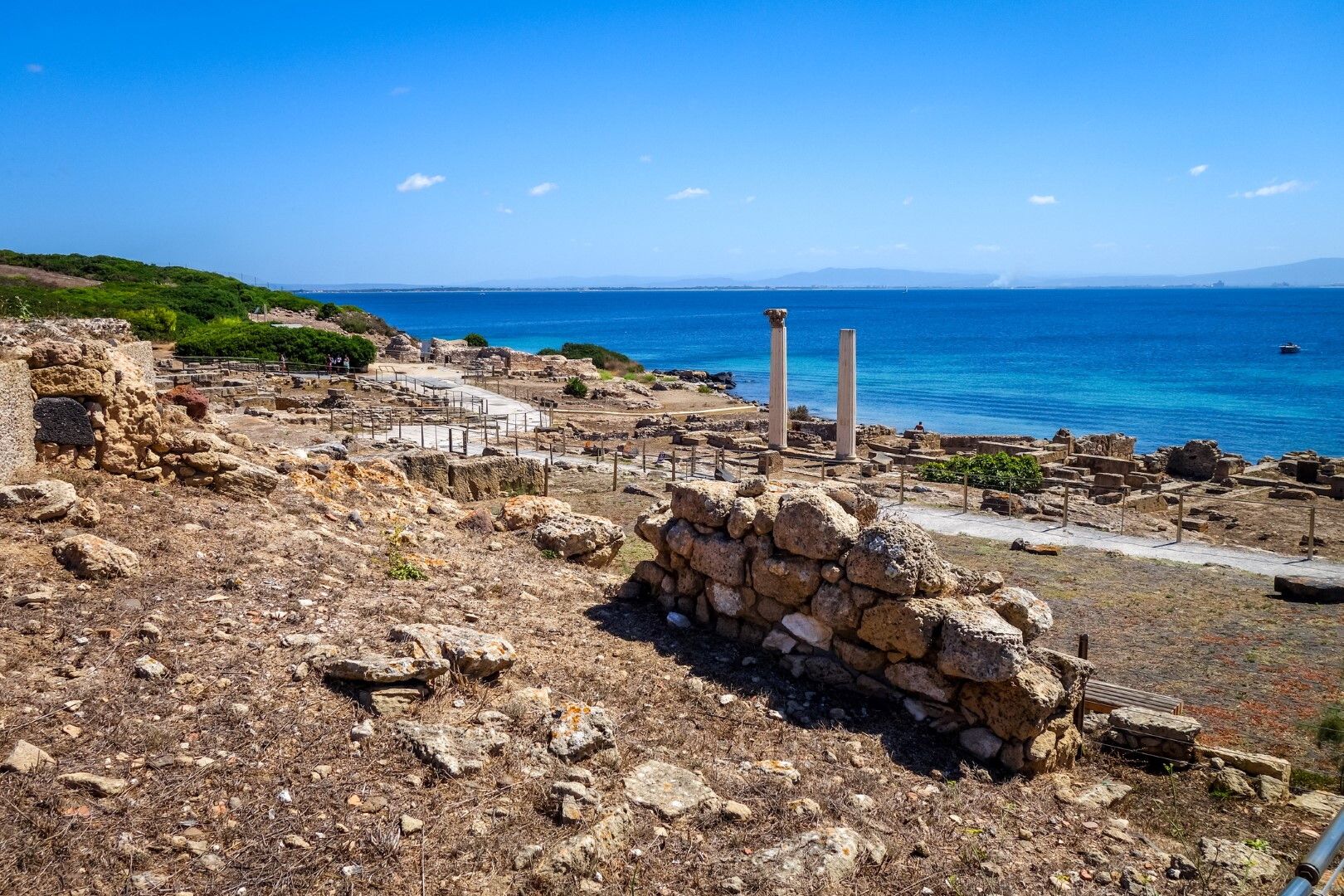 Uno straordinario museo all’aria aperta - Tharros è un vero e proprio museo all’aria aperta, un ampio anfiteatro naturale affacciato sull’azzurro intenso mare. Un luogo da esplorare senza fretta, camminando fra i suoi imponenti resti archeologici immersi nella macchia mediterranea. Una visita – passeggiata ideale da fare in primavera, quando il clima è dolce e la natura verde e fiorita.Sulla collina settentrionale che domina la città e l’istmo e sui resti di un preesistente villaggio nuragico, si trovava il tofet (oggi ricostruito al Museo di Cabras), il santuario dei fanciulli di epoca fenicio-punica, con migliaia di urne cinerarie in terracotta contenenti resti di bambini e di animali e centinaia di stele in arenaria. A valle, si conservano importanti monumenti di età punica e romana, tra cui il cosiddetto “Tempio delle semicolonne doriche”, l’acquedotto, il castellum aquae, le strade lastricate in basalto, i templi e tre edifici termali. Alla fase paleocristiana risalgono poi la trasformazione di una delle terme in edificio di culto e l’impianto di un battistero.
