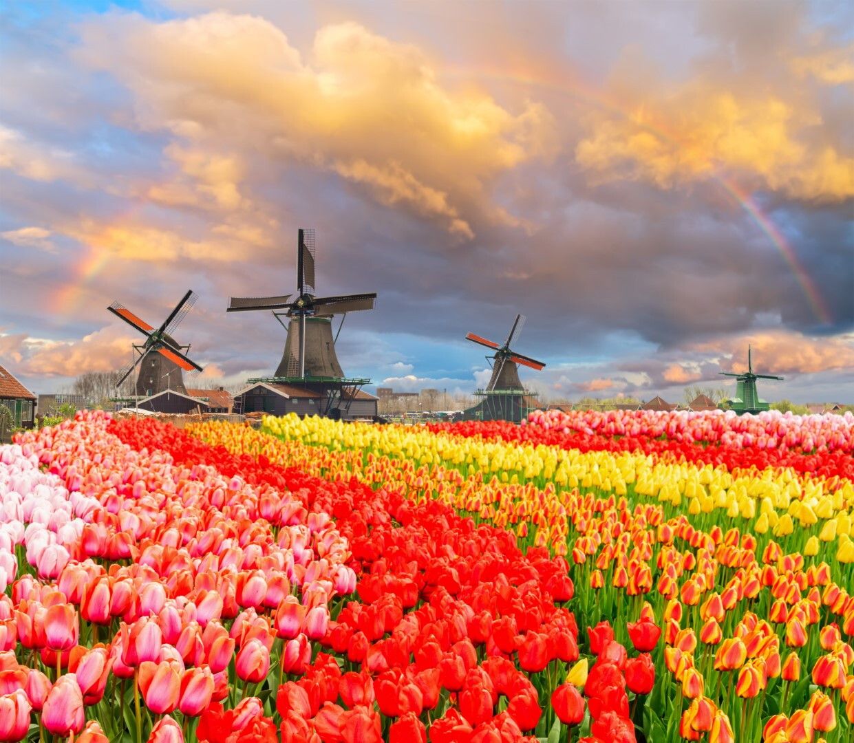 Tulipani a Keukenhof (Paesi Bassi) - Keukenhof, l'iconico giardino di tulipani dei Paesi Bassi, è un vero e proprio must nella lista dei campi di fiori più spettacolari al mondo. Passeggiare tra i suoi laghi, mulini a vento e foreste, è una delle esperienze più popolari per i turisti in questo periodo dell'anno. I giardini si trovano a Lisse, ma si possono visitare partendo da Amsterdam, Rotterdam o L'Aia, da soli o con tour organizzati.