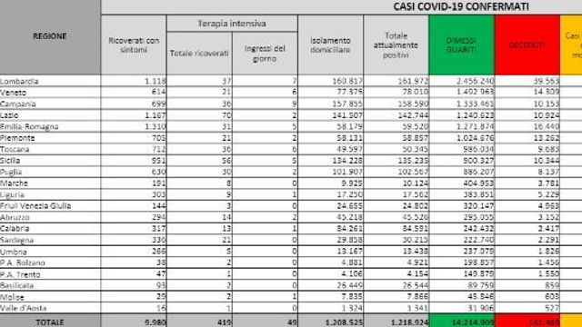 I ricoverati nei reparti ordinari tornano a scendere sotto quota 10mila: sono 9.980, 95 in meno rispetto a giovedì. Sono 136.328.765 le dosi di vaccino somministrate in totale.