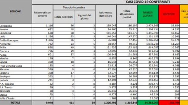 I guariti sono 27.704 mentre per gli attualmente positivi si registra un decremento di 9.195 unità per un totale di 1.216.843. È quanto emerge dal bollettino del ministero della Salute.