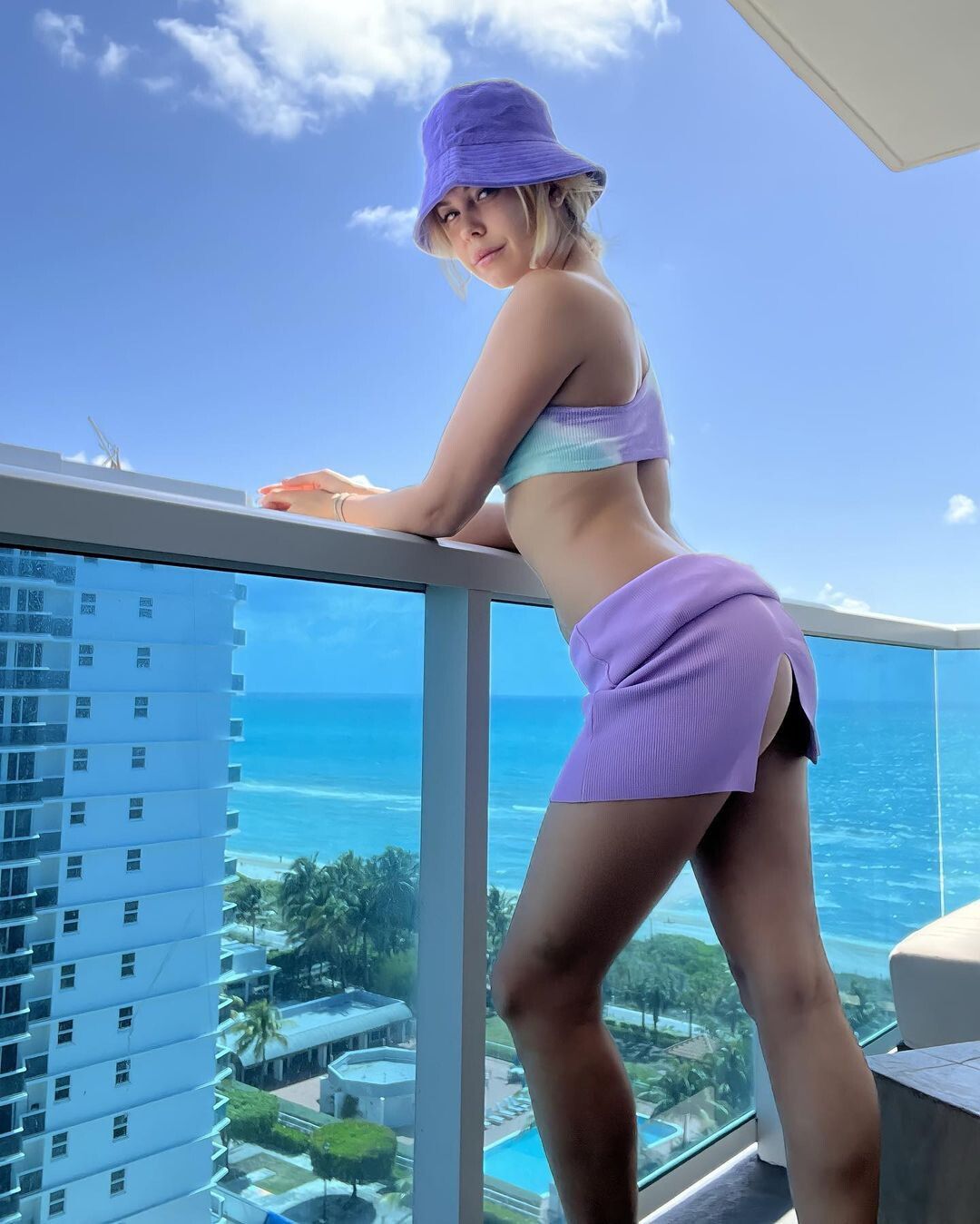 Cappellino in testa, top del costume e una gonnellina cortissima con lo spacco che si apre proprio a scoprirle i glutei. Costanza è maliziosa mentre posa per lo scatto social. Alle sue spalle si apre il panorama mozzafiato su Miami Beach, sulla spiaggia baciata dal sole e sull'Oceano Atlantico, ma ciò che fa veramente sognare sono il suo corpo perfetto e il suo atteggiamento ammiccante.