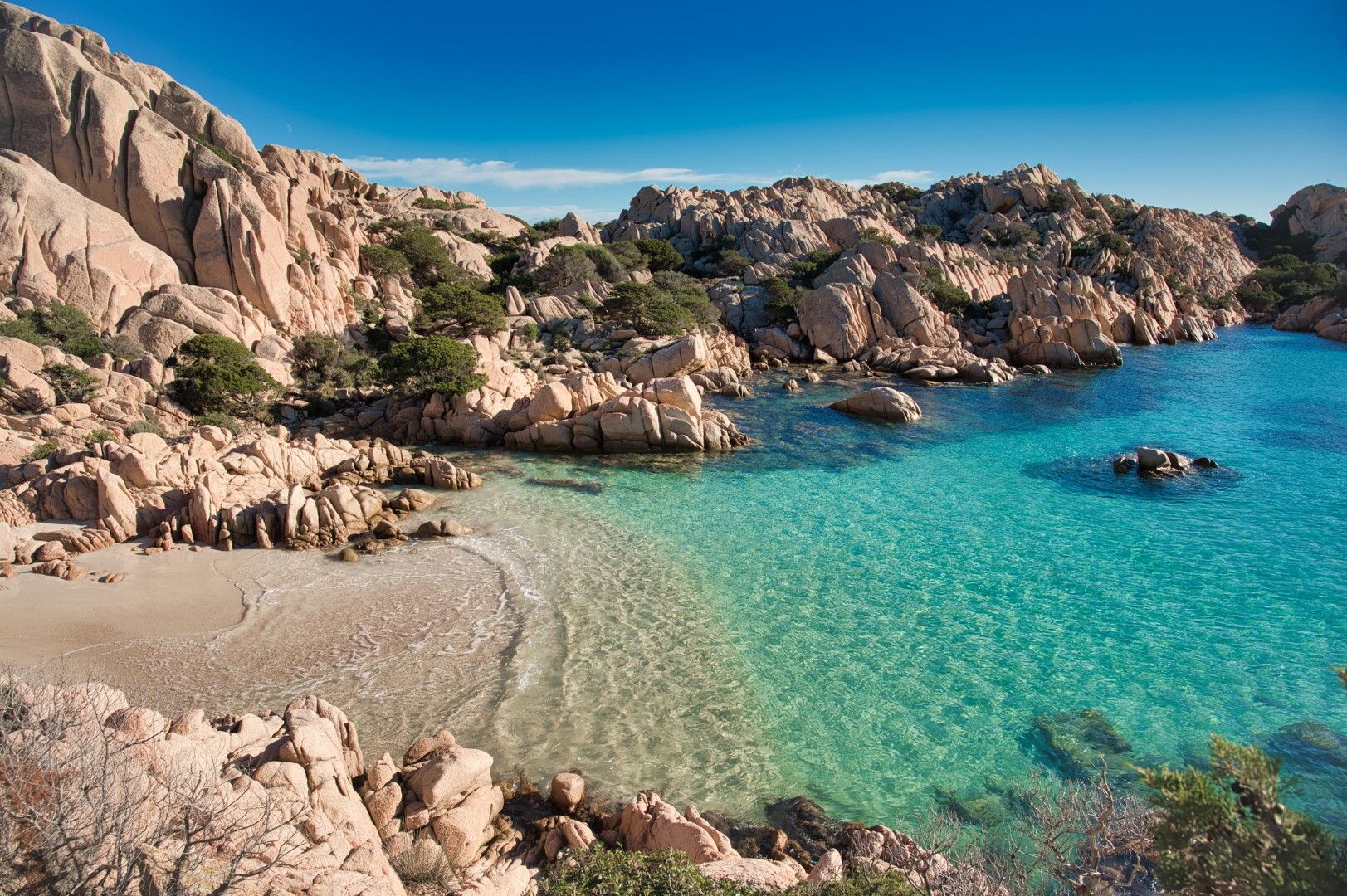 CALA COTICCIO, Caprera – È una delle insenature più famose dell’isola, tanto bella da essere nota con il nome di Tahiti. E in effetti non ha nulla da invidiare alla blasonata località polinesiana, con la sua sabbia candida, il mare cristallino e le rocce rosate che incorniciano la piccola insenatura, formando una vera piscina naturale. Meglio visitarla fuori stagione perché, anche se è sottoposta a tutela ambientale, la spiaggetta è sempre affollata di turisti.
