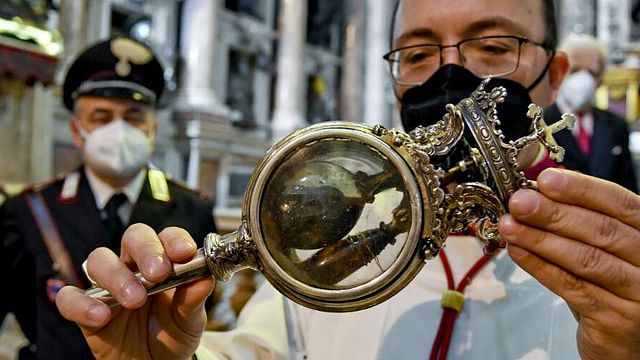 Niente attesa a Napoli per il "miracolo di maggio" di San Gennaro: sono state estratte dalla cassaforte le ampolle contenenti il sangue del patrono, che era già liquefatto, contrariamente al solito. Ora le reliquie saranno portate in processione dal Duomo alla basilica di Santa Chiara, riprendendo così il corte sacro che da secoli si svolge nel sabato che precede la prima domenica di maggio. La processione manca da tre anni: nel 2019 non si tenne per il maltempo, nel 2020 e 2021 per l'emergenza Covid.