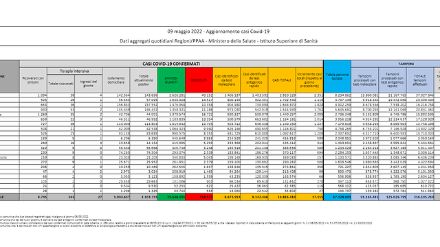 I numeri della pandemia - Gli ingressi giornalieri in terapia intensiva sono 27. I ricoverati nei reparti ordinari sono 8.735, ovvero 80 in più nelle 24 ore precedenti. Sono 1.103.755 le persone attualmente positive al Covid, 16.159 in meno rispetto a domenica.