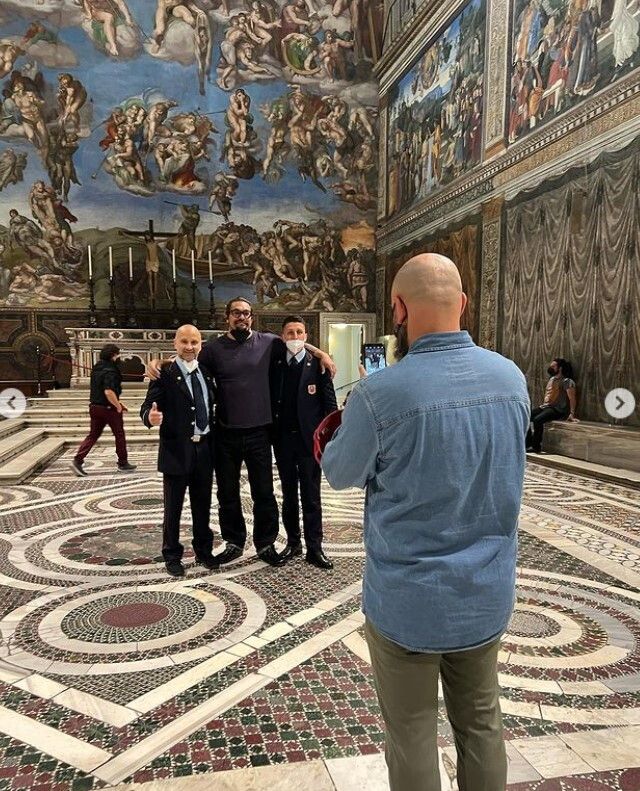 E non è tutto. Nei video postati si vede anche l'attore toccare con la mano un antico bassorilievo, azione vietata, non solo nella Cappella Sistina, ma in qualsiasi altro luogo artistico, proprio per preservare le fragili opere d'arte del passato.