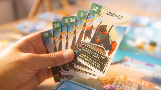Il turno finisce con la fase Notte in cui i giocatori attivano contemporaneamente tutte le abilità notturne dei personaggi e dei bottini sulla propria nave. Completato un giorno ne inizia un altro seguendo la stessa procedura fino alla fine del viaggio, in cui si attiveranno le Abilità di approdo (rappresentate dall’icona Ancora), si metteranno i dobloni al sicuro nel vostro forziere e si ripulirà la nave di personaggi e bottini. Non resta altro che scegliere chi pescherà le sei carte con cui si giocherà il nuovo viaggio… attenzione però, dal momento che alcuni giocatori potrebbero avere ancora in mano delle carte dal turno precedente che si andranno ad aggiungere a quelle nuove rendendo la dotazione di equipaggio leggermente differente.