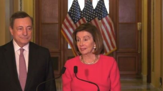 "E' un onore ricevere il premier Mario Draghi, essendo la prima speaker della Camera italoamericana". Lo ha detto Nancy Pelosi accogliendo il capo del governo italiano a Capitol Hill. "L'Italia è un partner di pace", ha aggiunto la speaker della Camera Usa. Dal canto suo Draghi ha affermato: "E' un grande onore essere nel centro della democrazia, i nostri rapporti stretti si sono rafforzati con la guerra in Ucraina. Per me essere qui significa che un pezzo dell'Ue è qui, sono felice di essere qui non solo come italiano ma anche come europeo".