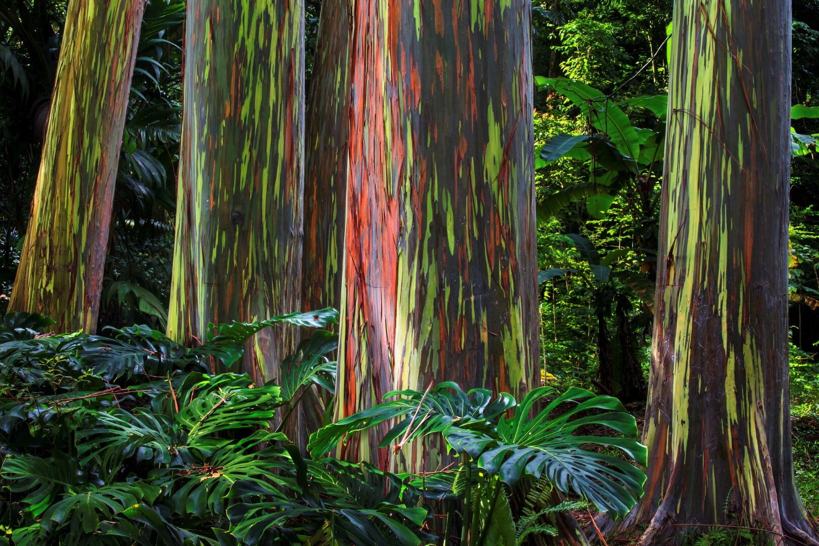 FORESTA ARCOBALENO, Maui, Hawaii – Non a caso questo bosco viene chiamato “Rainbow forest” o anche “Foresta dipinta”: i tronchi imponenti di questi eucalipti sono colorati di variopinte strisce verticali che assumono tonalità anche molto accese. Il colore della corteccia cambia infatti a seconda delle stagioni, ma lo strato nuovo si sovrappone a quello vecchio lasciandone scoperte alcune parti, da cui deriva la bizzarra colorazione di questi fusti.