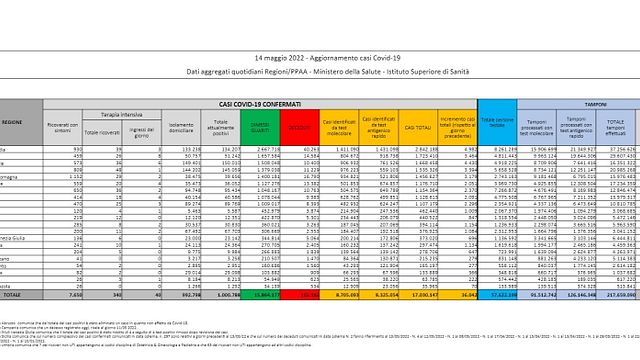 I numeri della pandemia - Sono 340 i pazienti ricoverati in terapia intensiva, uno in meno rispetto a venerdì nel saldo tra entrate e uscite. Gli ingressi giornalieri sono invece 40. I ricoverati nei reparti ordinari sono 7.650, cioè 257 in meno nelle ultime 24 ore. Sono 1.000.788 le persone attualmente positive al Covid, 7.075 in meno nelle ultime 24 ore. In totale sono 17.030.147 gli italiani contagiati dall'inizio della pandemia, mentre i morti salgono a 165.182.