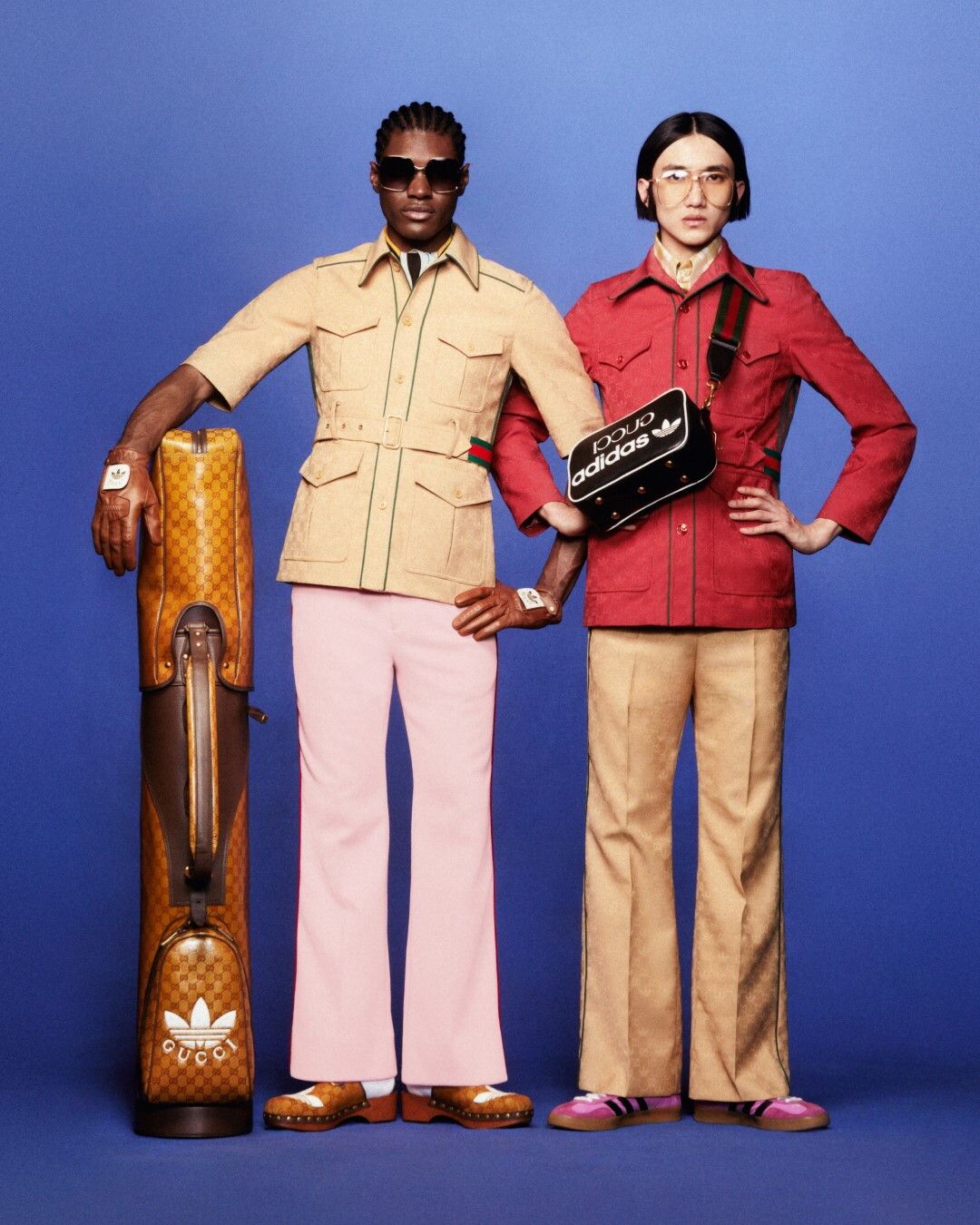 Ci sono le inconfondibili tre strisce bianche e l'iconico nastro verde e rosso, il trifoglio e il monogramma "GG" sulle tute dal richiamo rétro, sui pantaloni jogger, sui capi ispirati allo sport, sulle creazioni sartoriali riviste in chiave streetwear e casual. Un vero e proprio processo di ibridazione, che investe anche le scarpe con il tacco, i mocassini in pelle scamosciata, le sciarpe in seta. Il messaggio, di fondo, vuole essere dirompente: non esistono dogmi per vestirsi.