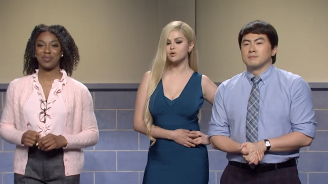Nel monologo di apertura, Selena ha scherzato sul fatto che uno dei motivi per cui voleva essere ospite del SNL era trovare l'amore: "Sono single e ho sentito che SNL è un ottimo posto per trovare l'amore. Emma Stone ha incontrato suo marito Dave McCary qui, e poi Scarlett Johansson e Colin Jost...".