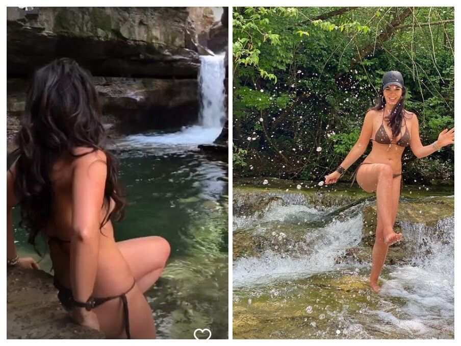 Eppure, è sensuale e seducente in ogni suo scatto. Una gita al fiume in short, tshirt e zainetto in spalla, in un attimo si trasforma in una location perfetta per uno shooting ad alto tasso erotico. Lei schizza con il piede l’acqua fresca e sorride facendo smorfie e linguacce. I follower restano senza parole davanti al suo fisico coperto da un micro-bikini. Resta solo una curiosità: chissà chi l’ha accompagnata in questa passeggiata tra le cascate di montagna e chi le ha scattato le foto in due pezzi…