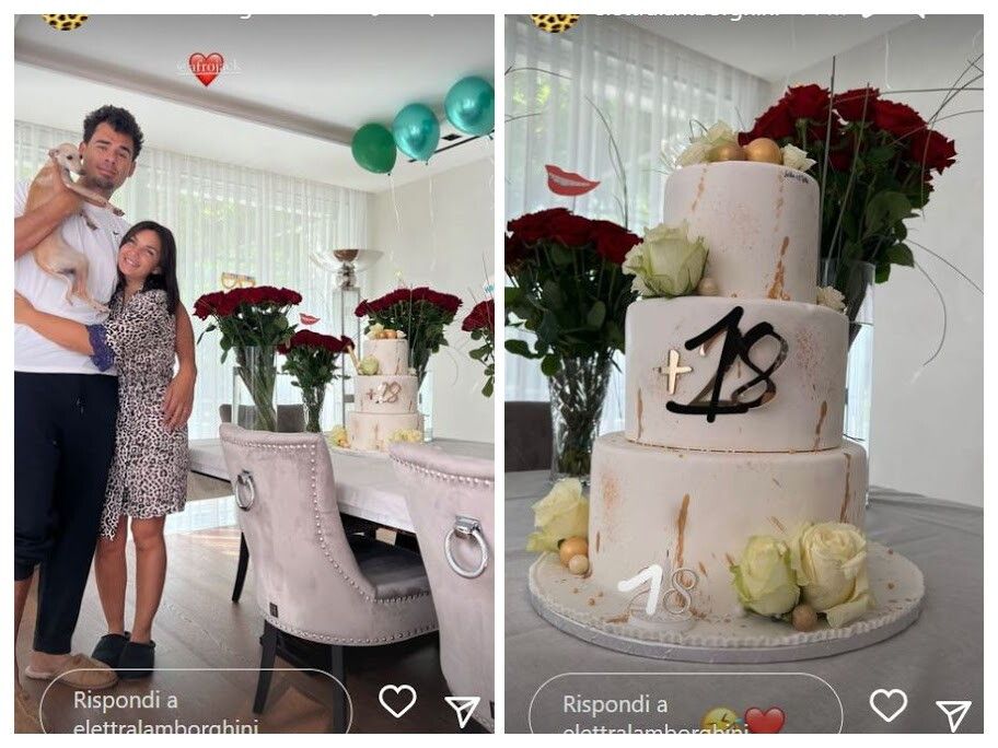 “Buon compleanno a me. Finalmente 18… Il 28 sulla torta è uno scherzo” scrive Elettra postando uno scatto con il suo dolce personalizzato mentre sorride insieme al suo cagnolino. Tre piani di birthday cake tra rose bianche e macaron per festeggiare la Lamborghini che ha ricevuto regali, fiori, biglietti, dediche e palloncini. Accanto a lei il marito Afrojack che l’ha coccolata e riempita di attenzioni e le sorelle gemelle Lucrezia e Flaminia, legatissime alla cantante.