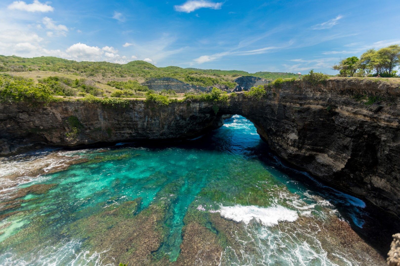 ANGEL'S BILLABONG, Nusa Penida, Bali - È una piccola piscina naturale incastonata tra le rocce e spesso battuta dalle onde dell'oceano: quando le onde si ritirano si può ammirare il verde del fondale in tutte le sue innumerevoli sfumature. Durante la visita occorre fare attenzione a non avvicinarsi troppo: il pericolo di essere trascinati via dalle onde, a volte molto alte, è reale.