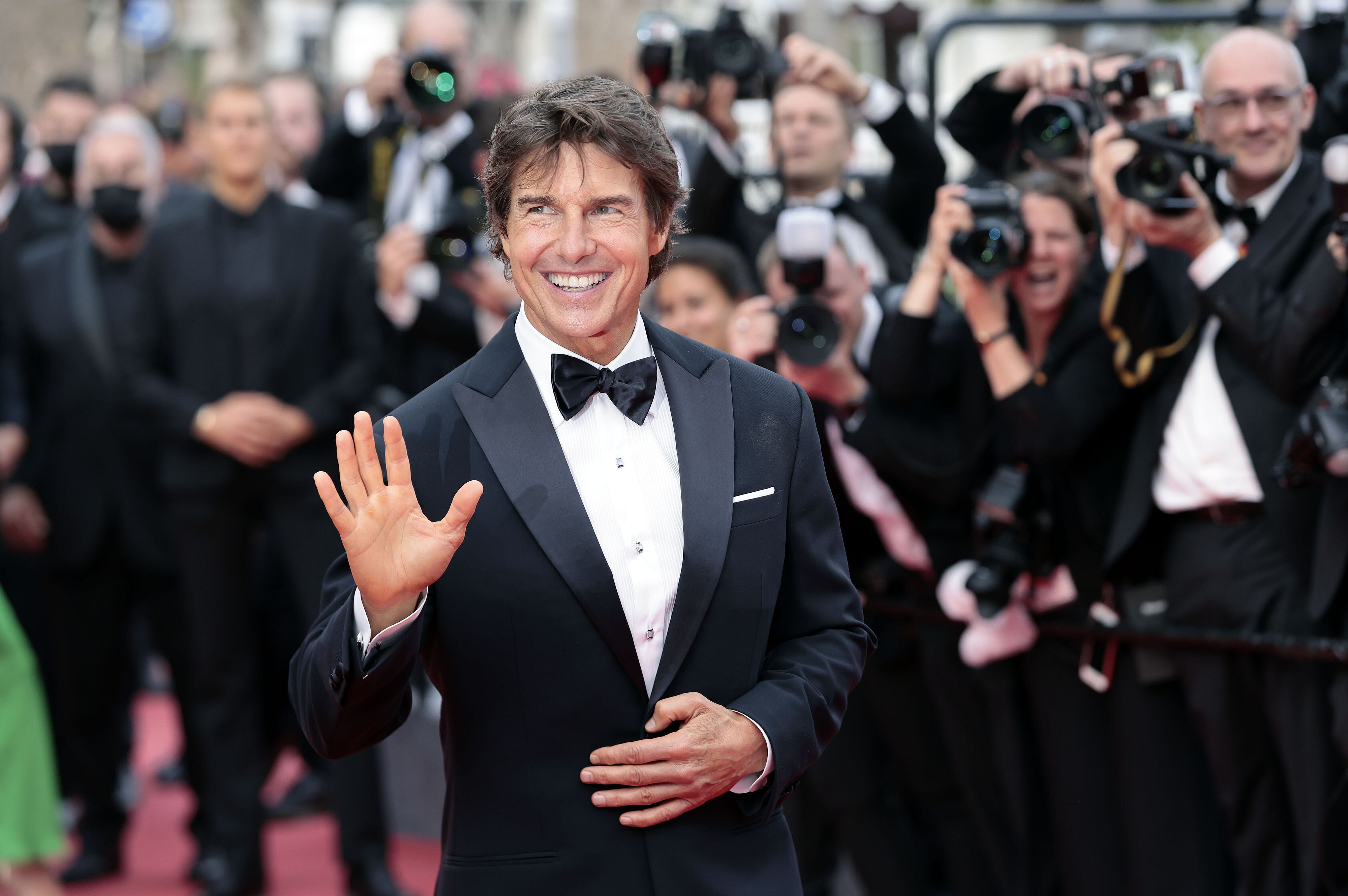 Aerei e film, del resto, li sognava già da bambino. L'attesa era tutta per lui, che ha portato a Cannes il suo "Top Gun: Maverick", il sequel del film che 36 anni fa lo ha consacrato star mondiale. Sorridente, sicuro di sé, dal look impeccabile: il quasi sessantenne Tom Cruise (compleanno il 3 luglio) ha dato una lezione di stile su come affrontare i flash e il red carpet della Croisette. In suo onore un omaggio scenografico, il volo dei piloti della Patrouille de France (la pattuglia acrobatica dell’aeronautica militare francese) e una Palma d'Oro a sorpresa alla carriera, o più precisamente “onoraria”.