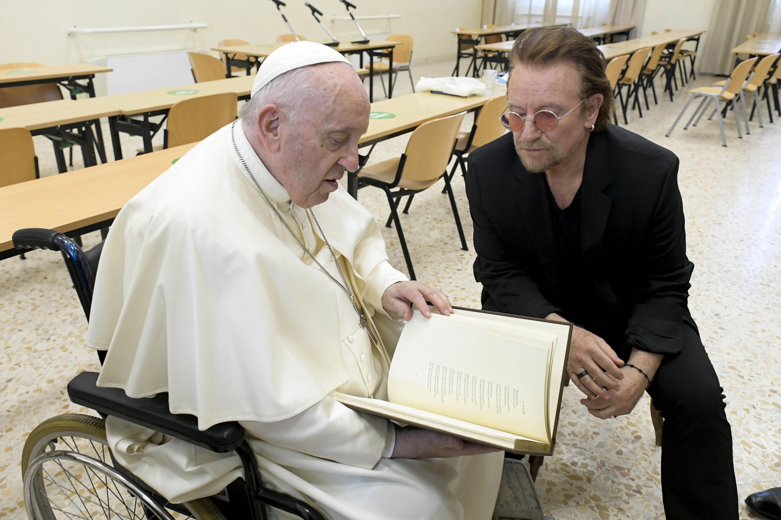 Bono è a Roma per partecipare a un incontro con il Papa organizzato da Scholas Occurrentes, una fondazione pontificia che si occupa di educazione dei più svantaggiati, nel corso di una cerimonia nell'Aula Magna dell'Università Urbaniana. "L'educazione delle ragazze è un superpotere per combattere l'estrema povertà e vorrei chiedere a Sua Santità sei lei pensa che le donne e le ragazze abbiano lo stesso ruolo potente per cambiare il mondo e il cambiamento climatico", ha chiesto il leader degli U2. "Parliamo della madre-terra, non del padre-terra", ha detto il Pontefice con un sorriso, ricevendo un lungo applauso.