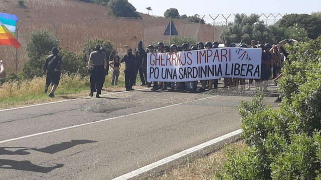 Manifesti, slogan e proteste contro le esercitazioni della Nato in Sardegna. Diversi dissidenti hanno sfilato in corteo davanti al poligono di Teulada, nell'isola: alcuni militanti hanno anche tranciato quasi cinque metri di rete intorno all'area militare sfidando con cori le forze dell'ordine in tenuta antisommossa, ma non c'è stato nessuno scontro. Dopo aver rotto la recinzione infatti i manifestanti, a volto coperto, hanno ripreso la marcia. Le forze dell'ordine non hanno ceduto alle provocazioni e i miilitanti sono tornati alla piazza del raduno.