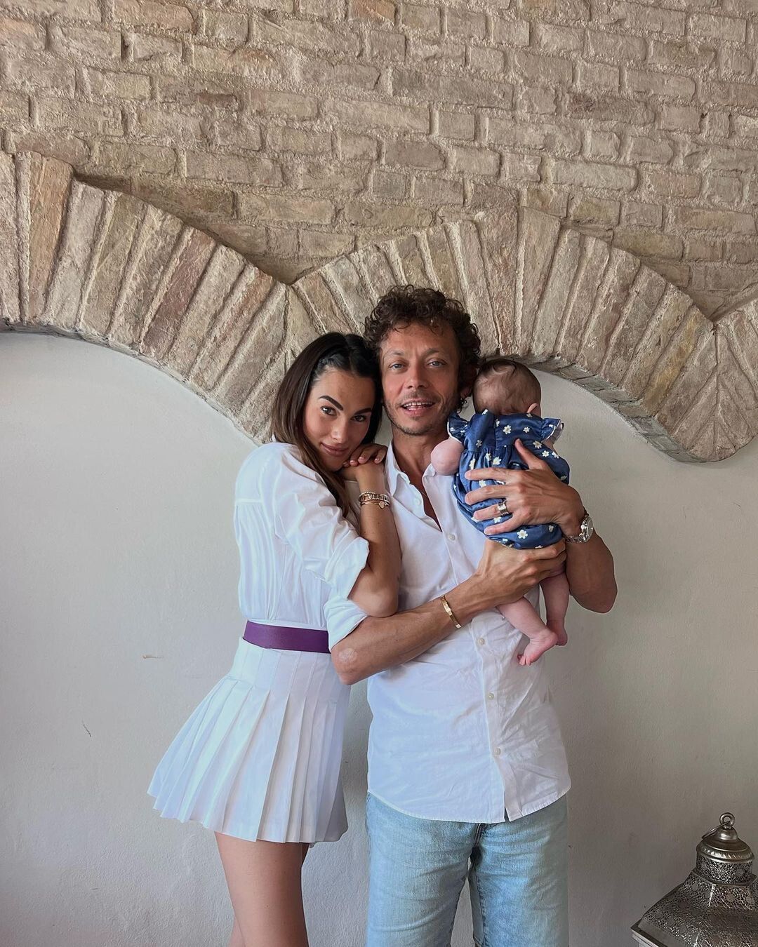 Invitati a una comunione, Francesca Sofia e Valentino ne approfittano per il primo ritratto social con Giulietta. La modella indossa un completo bianco con la gonna a pieghe cortissima che le scopre le gambe e una cintura viola in vita. Valentino è informale con camicia e jeans chiari, mentre per Giulietta hanno scelto un abito blu a margheritine. Hanno scelto di non far vedere il volto della piccola e così, in questo scatto come in tutti i precedenti, la mostrano di schiena.