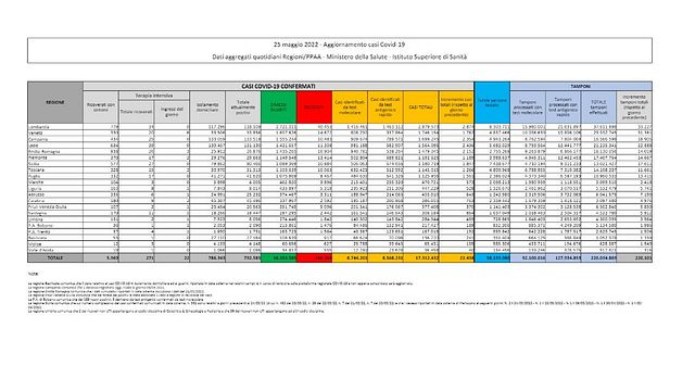 Gli attualmente positivi al Covid-19 sono 792.583, cioè 17.438 in meno rispetto al giorno precedente. Un anno fa i nuovi casi 3.937 su 260.962 tamponi, per un tasso di positività dell'1,5%. I decessi erano invece 121.